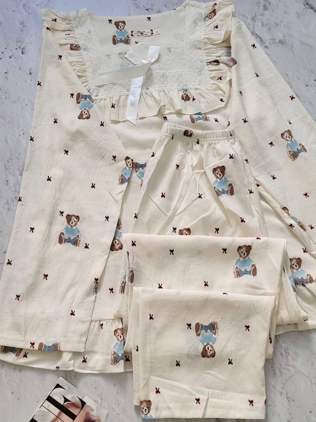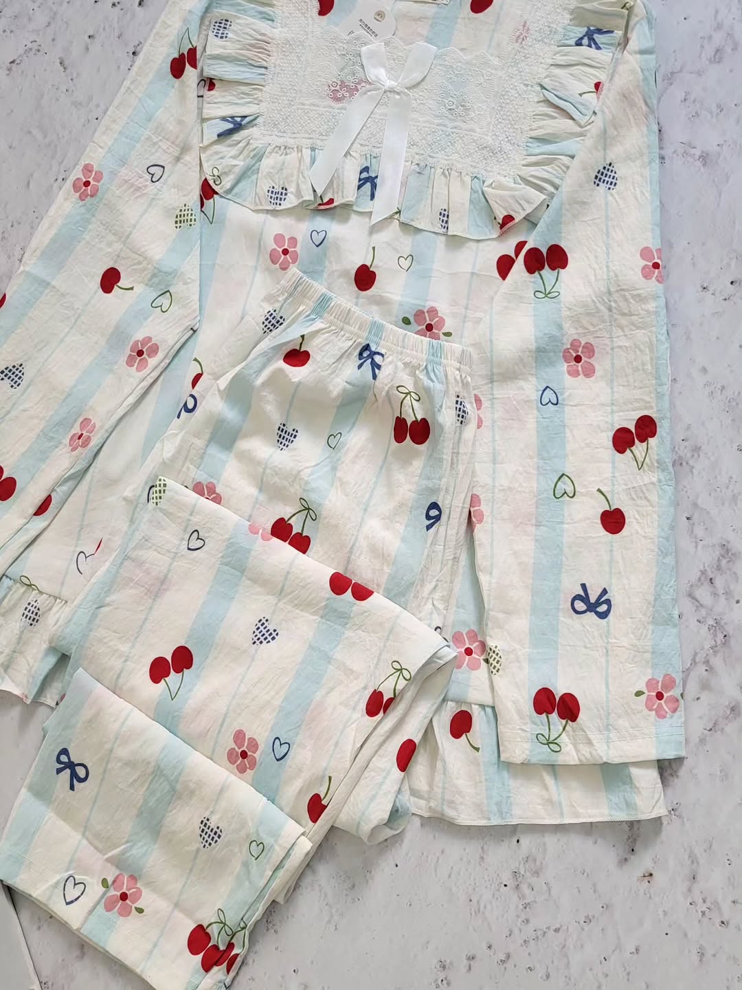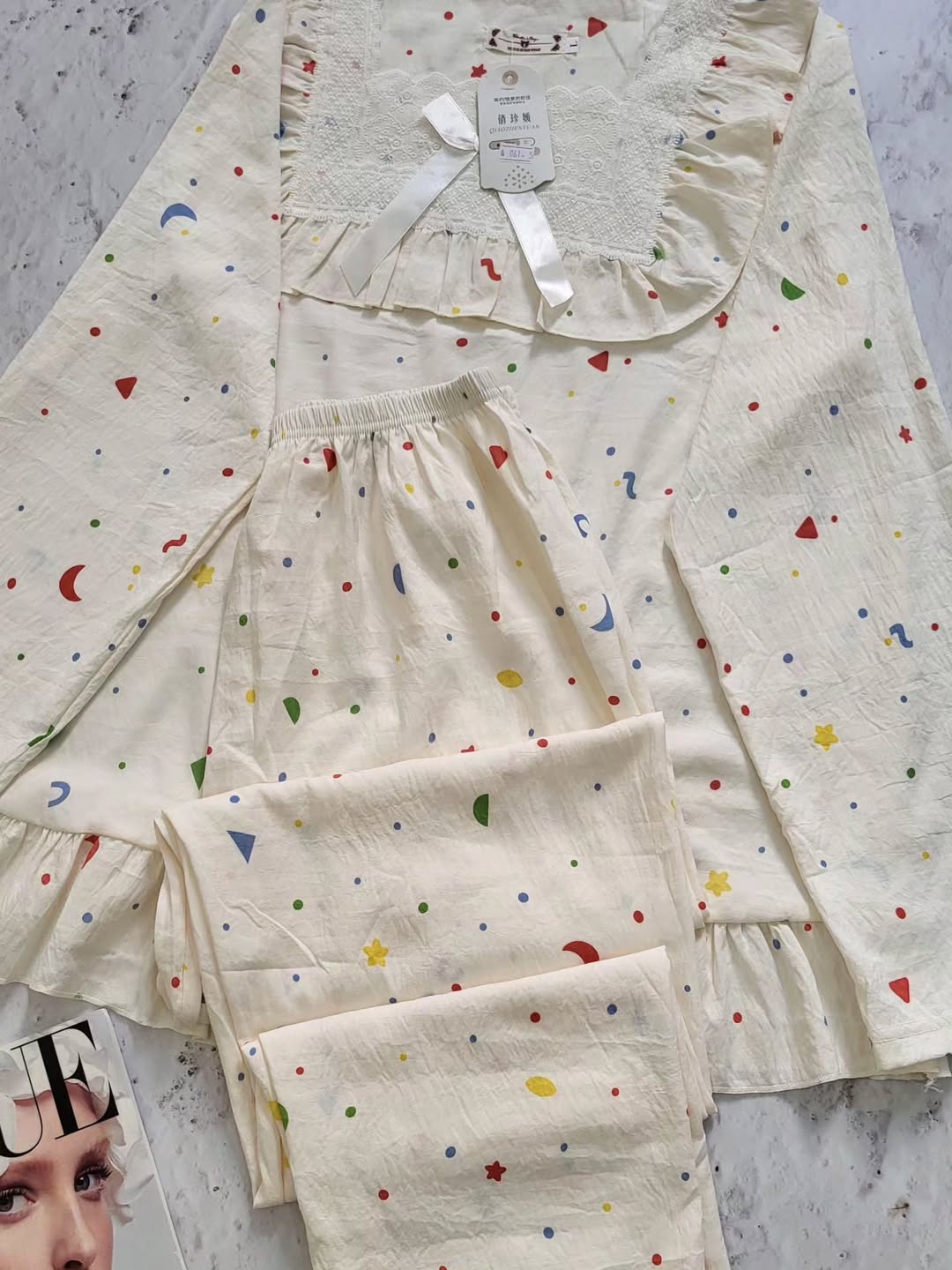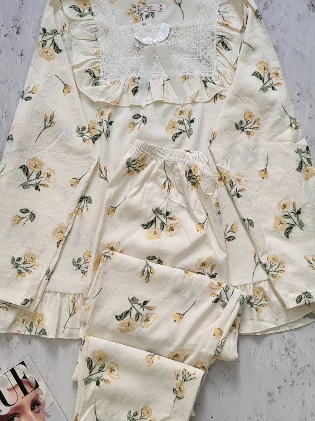 ست زیبا شامل بلوز و شلوار با کیفیت نخ موسلین و طراحی شیک. اندازههای مناسب برای سایز۳۶،۴۲