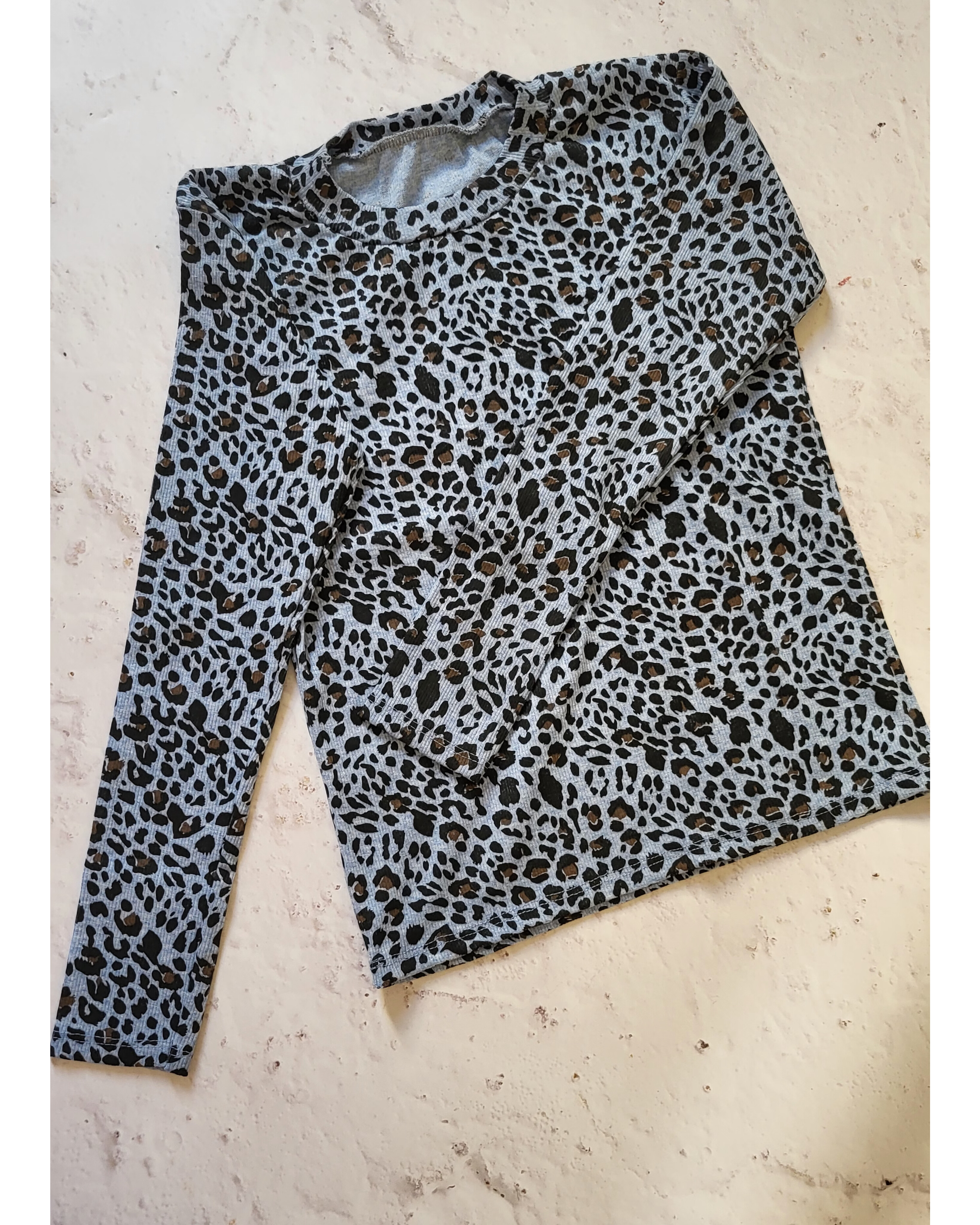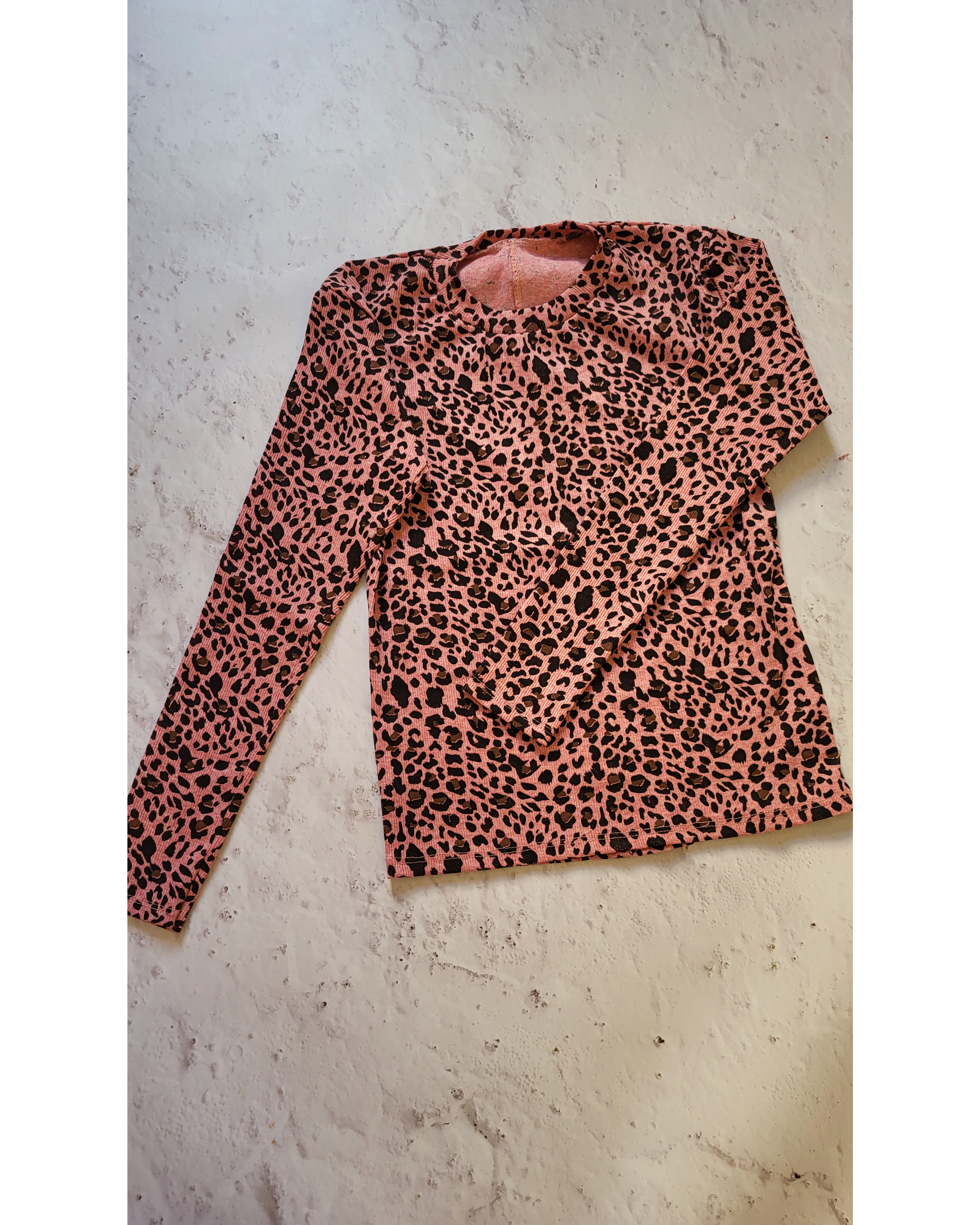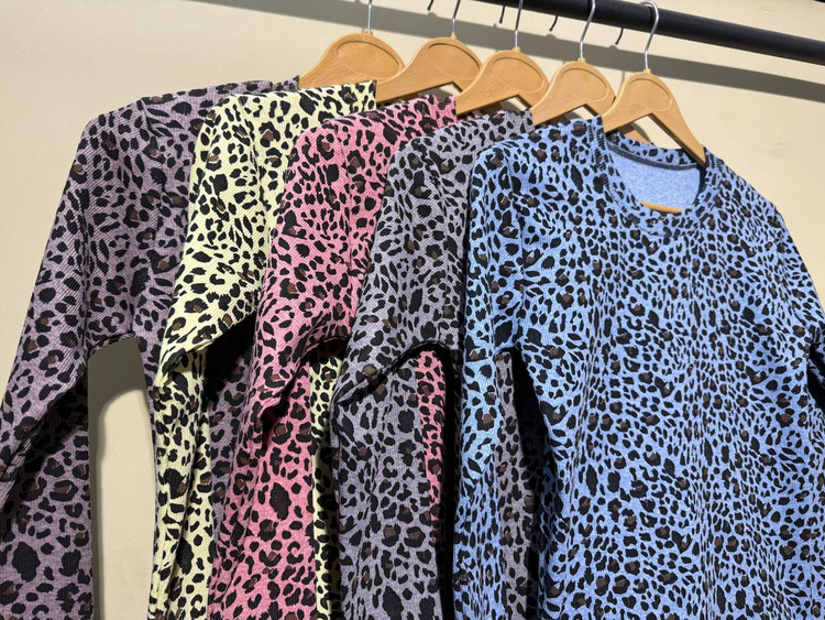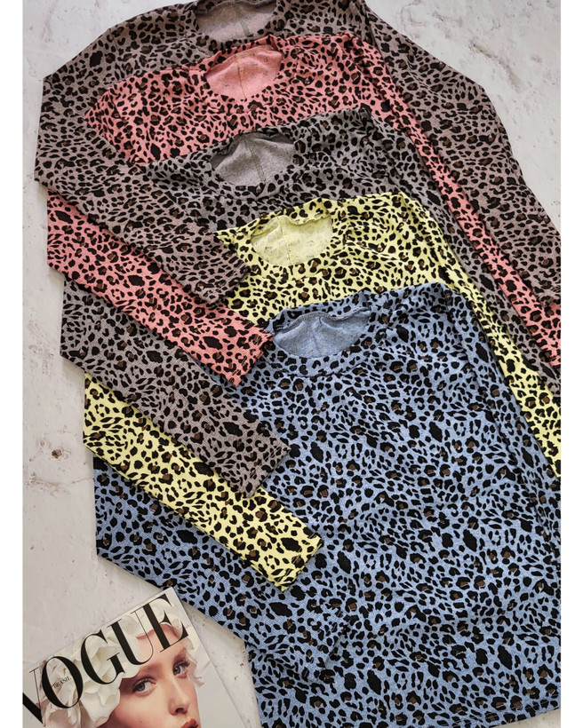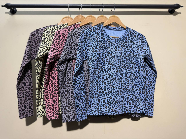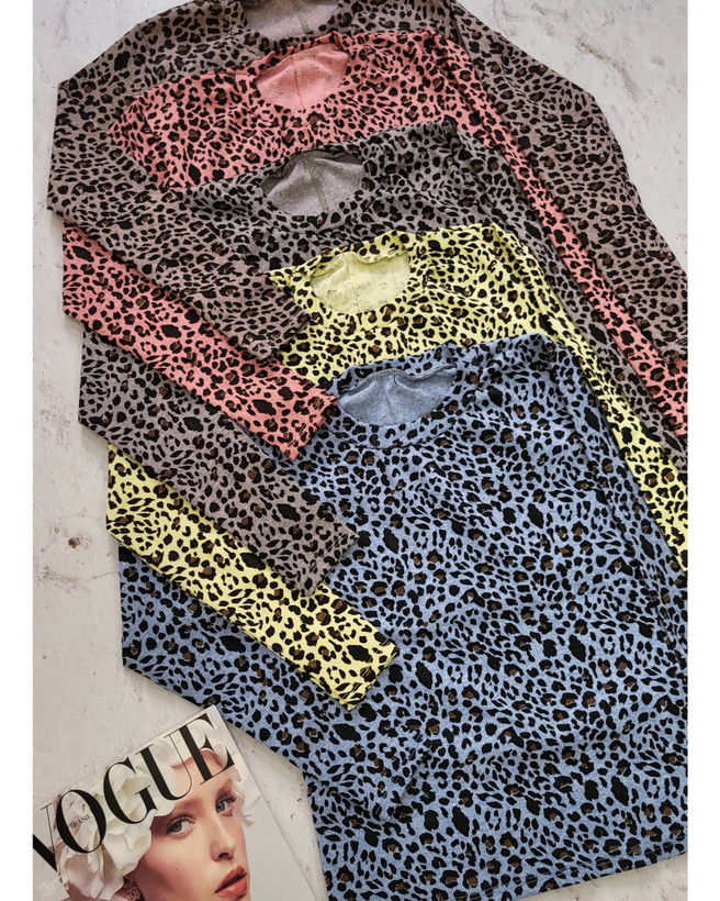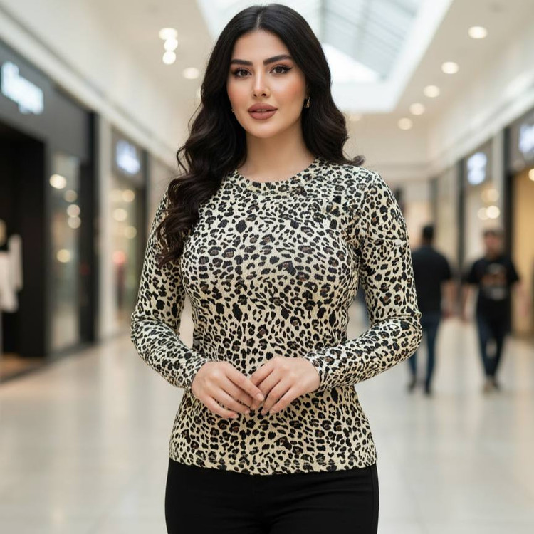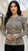 بلوز استین بلندزنانه مدل پلنگی جنس سوپر پنبه قد ۵ فری سایز تا ۴۴ جنس کبریتی سوپر پنبه