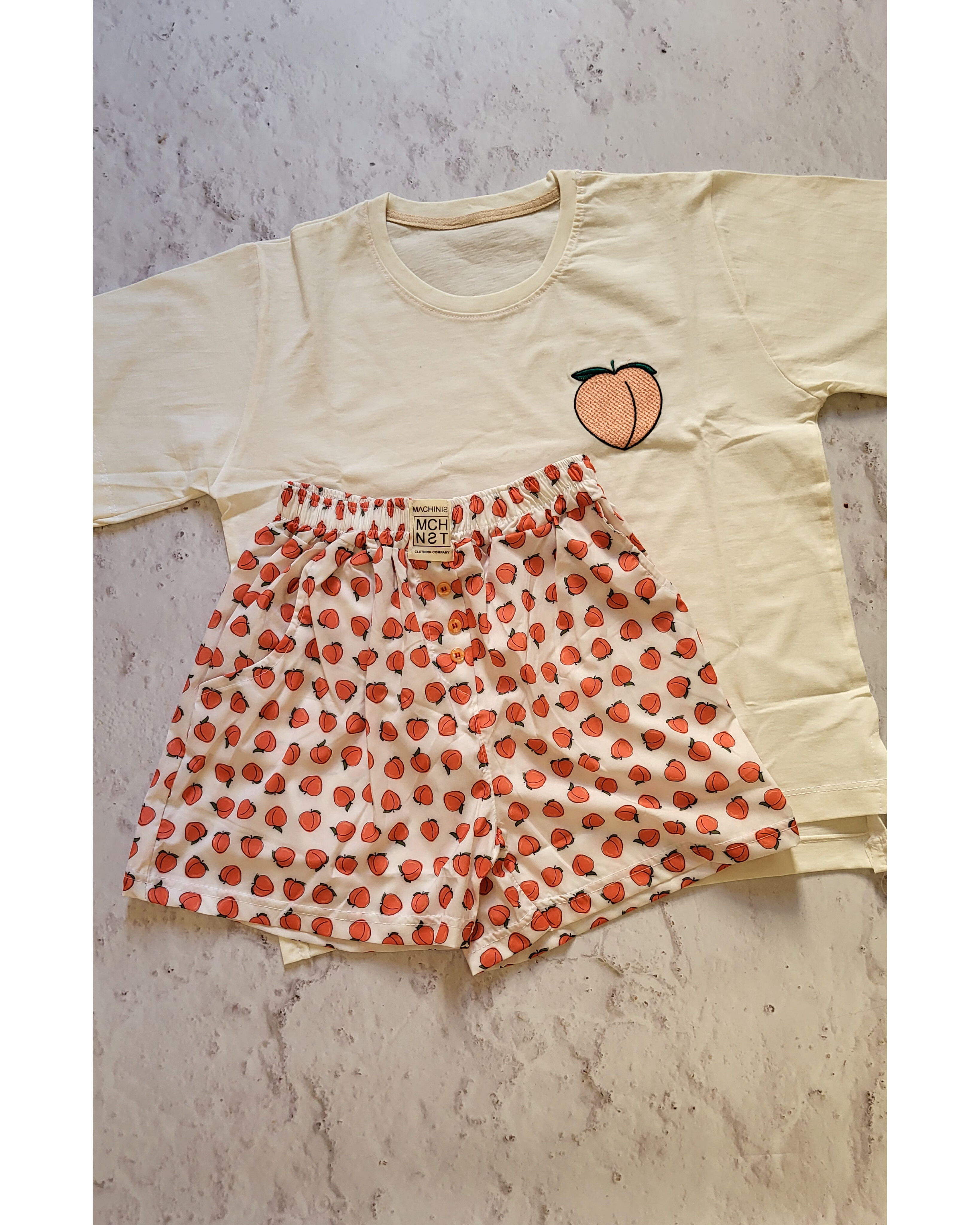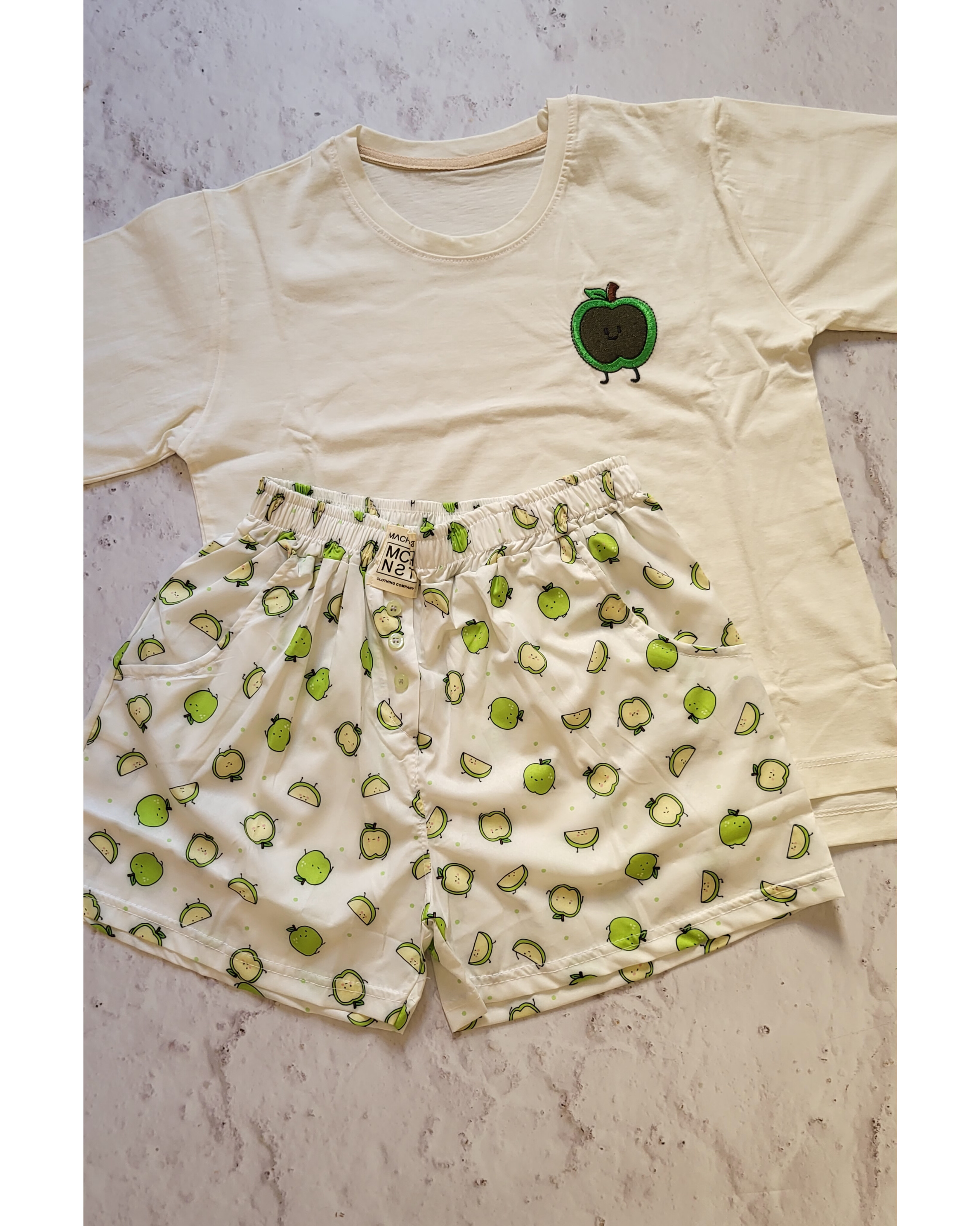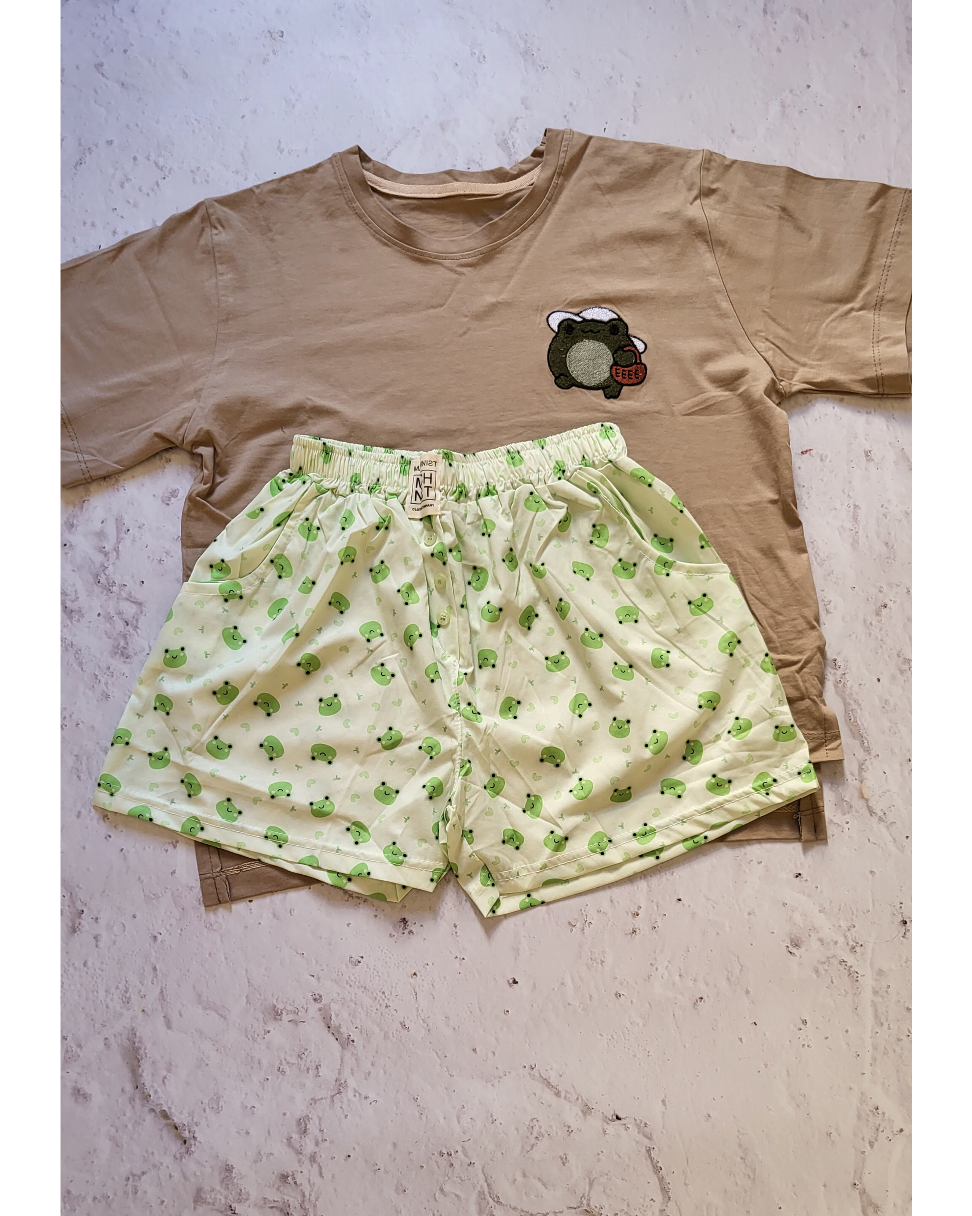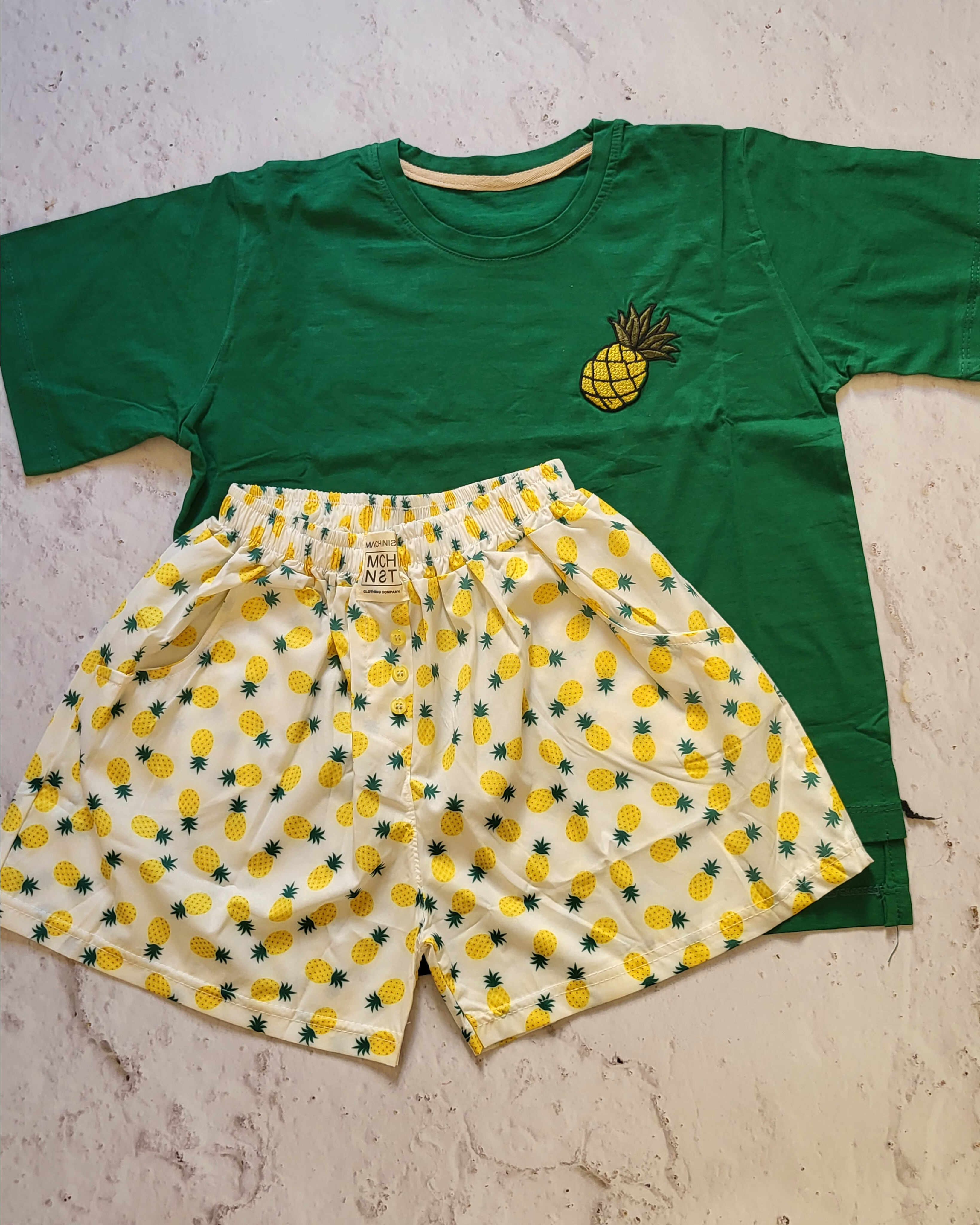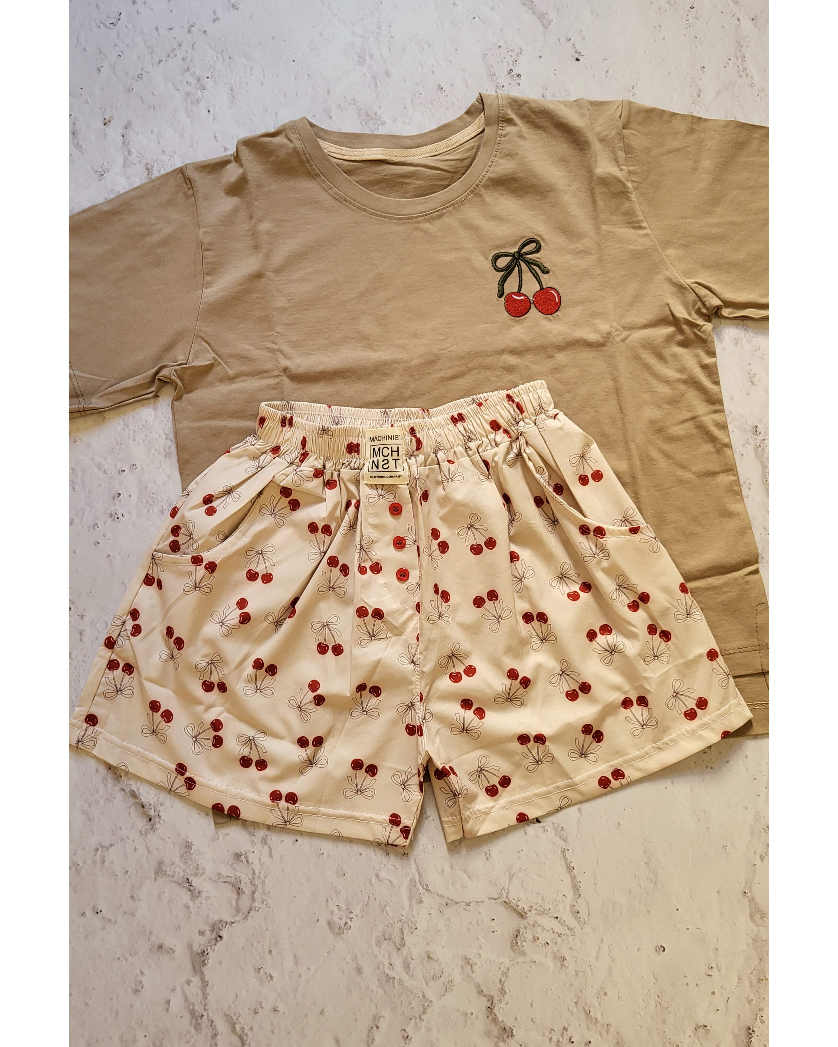ست تیشرت و شورتک با جنس تیشرت از نخ پنبه و شورتک از پارچه بوگاتی (کرپ طور).