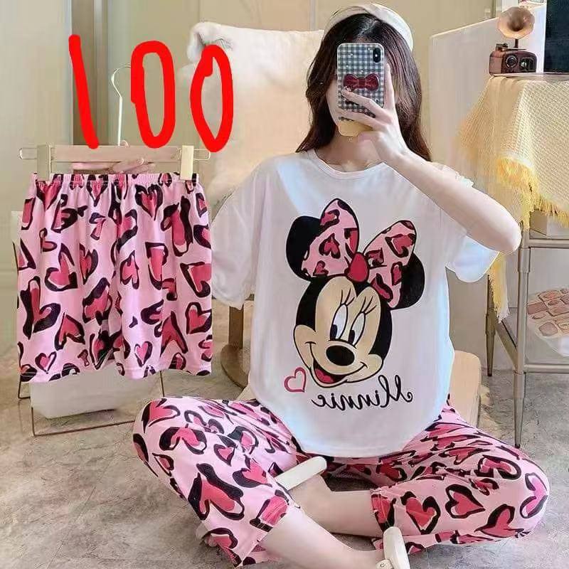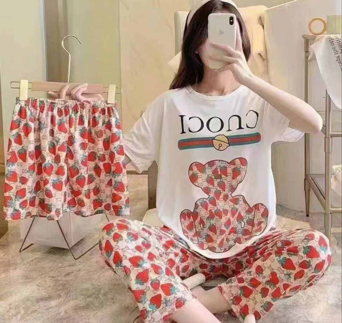 ست زنانه سه تیکه تیشرت ،شلوار ،شورتک وارداتی با کشسانی